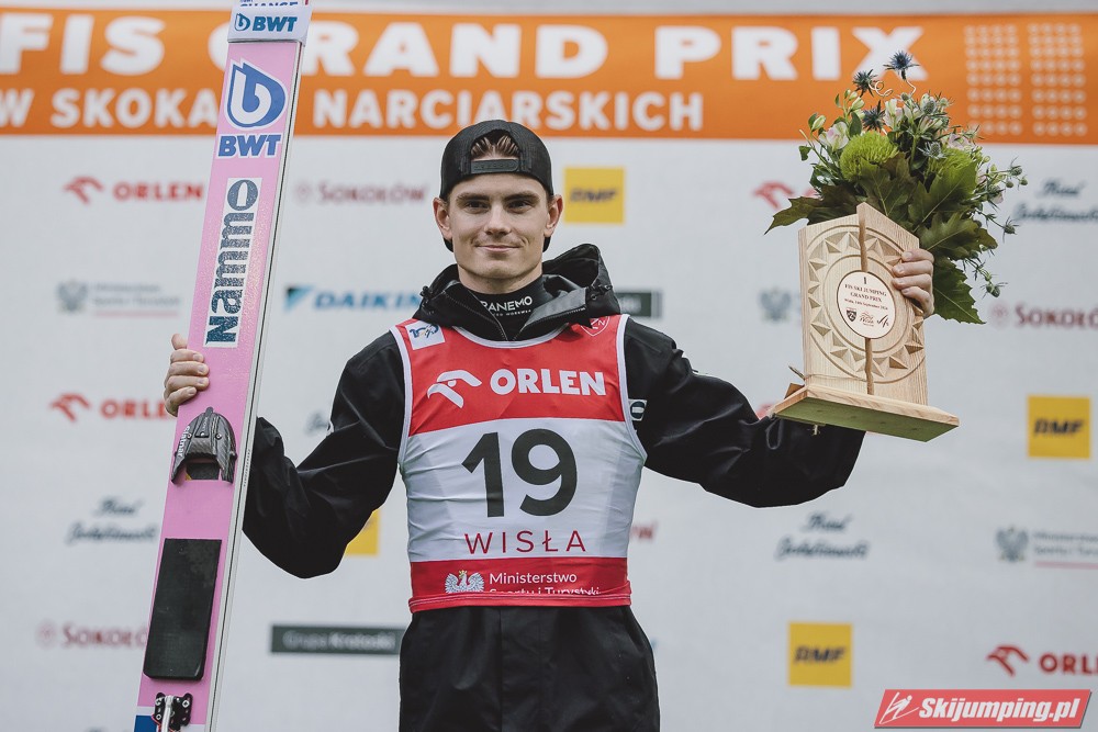 Marius Lindvik został zwycięzcą sobotniego konkursu indywidualnego Letniego Grand Prix na Skoczni im. Adama Małysza (HS134) w Wiśle. Reprezentant Norwegii triumfował po dwóch rekordowych skokach na odległość 133 m i 135,5 m. Drugie miejsce zajął Estończyk Artti Aigro, a trzecie Szwajcar Gregor Deschwanden. W czołowej dziesiątce sklasyfikowani zostali ósmy Aleksander Zniszczoł i dziewiąty Dawid Kubacki. Awans do finału wywalczyło siedmiu Polaków.