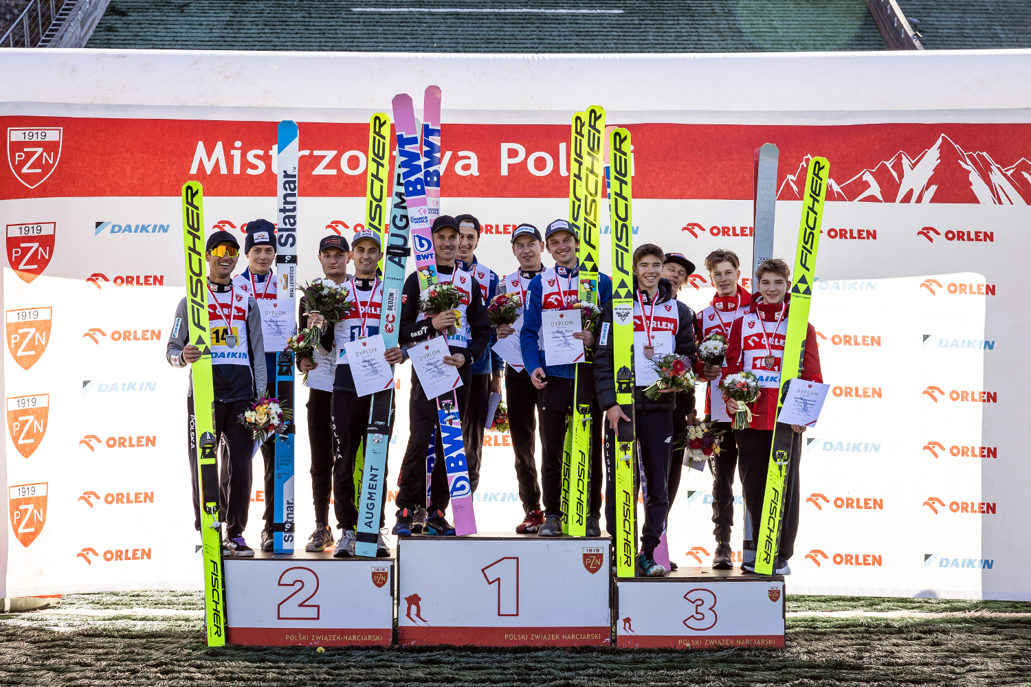 Srebrne medale wywalczyła ekipa AZS Zakopane. Mateusz Gruszka (92,5 m), Tymoteusz Amilkiewicz (97 m), Andrzej Stękała (97,5 m) i Maciej Kot (103 m) stracili 22,5 punktu do triumfatorów.