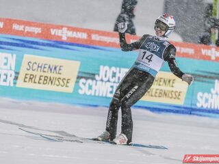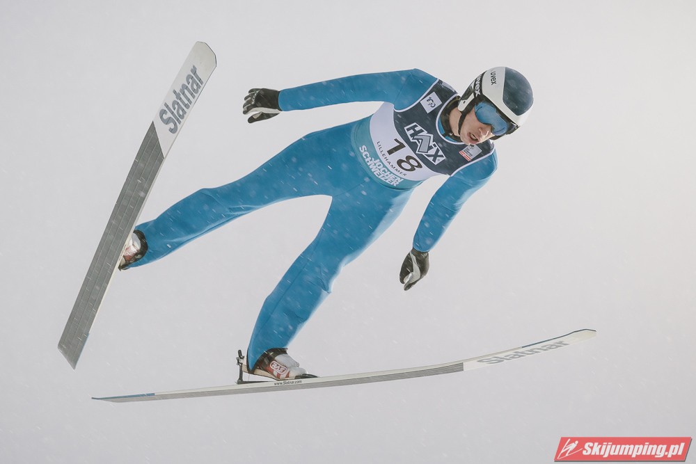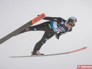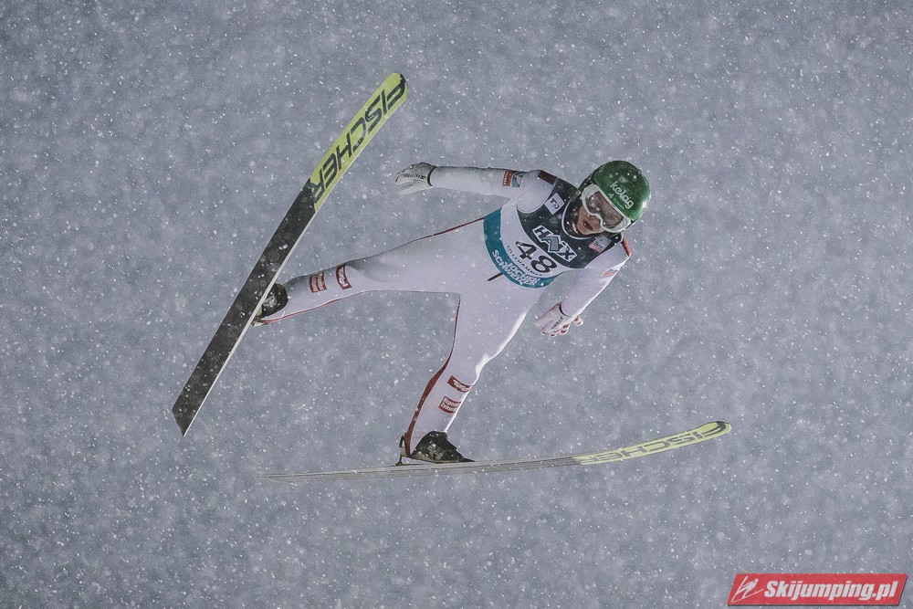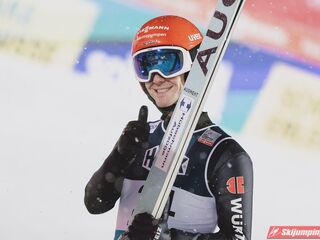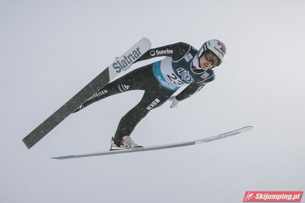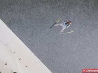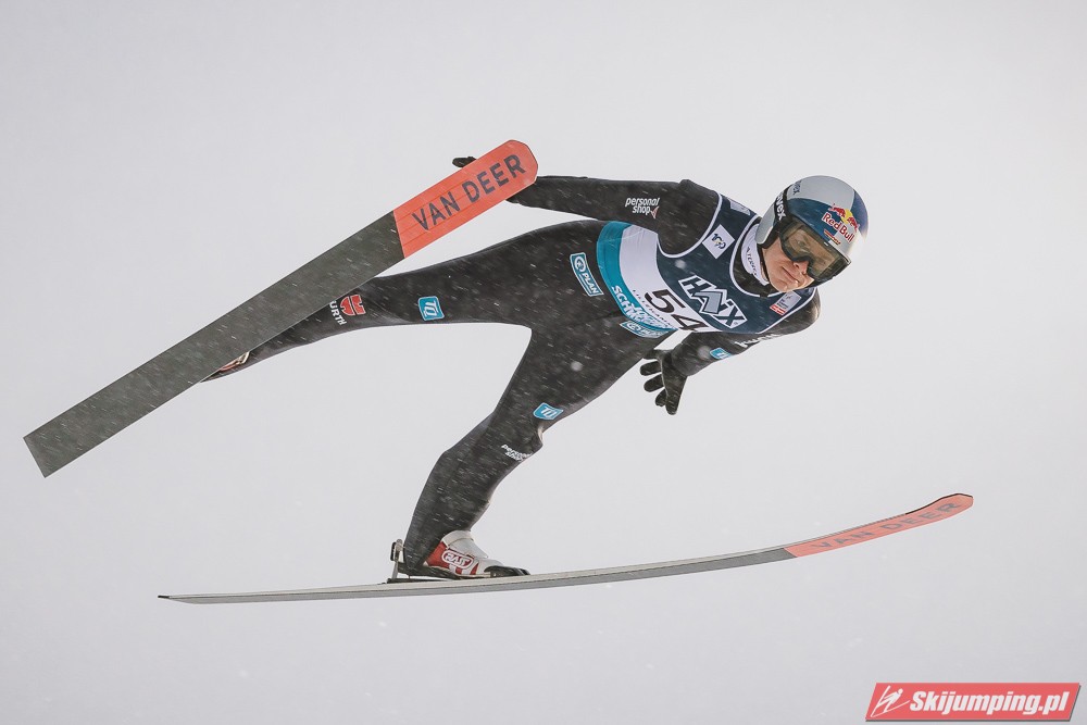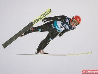 Andreas Wellinger po skoku na 131. metr awansował na siódme miejsce. Ósmy był Maximilian Ortner (129 m), dziewiąty Manuel Fettner (128 m), zaś dziesiąty - powtarzając wynik z soboty - Tate Frantz (124,5 m).