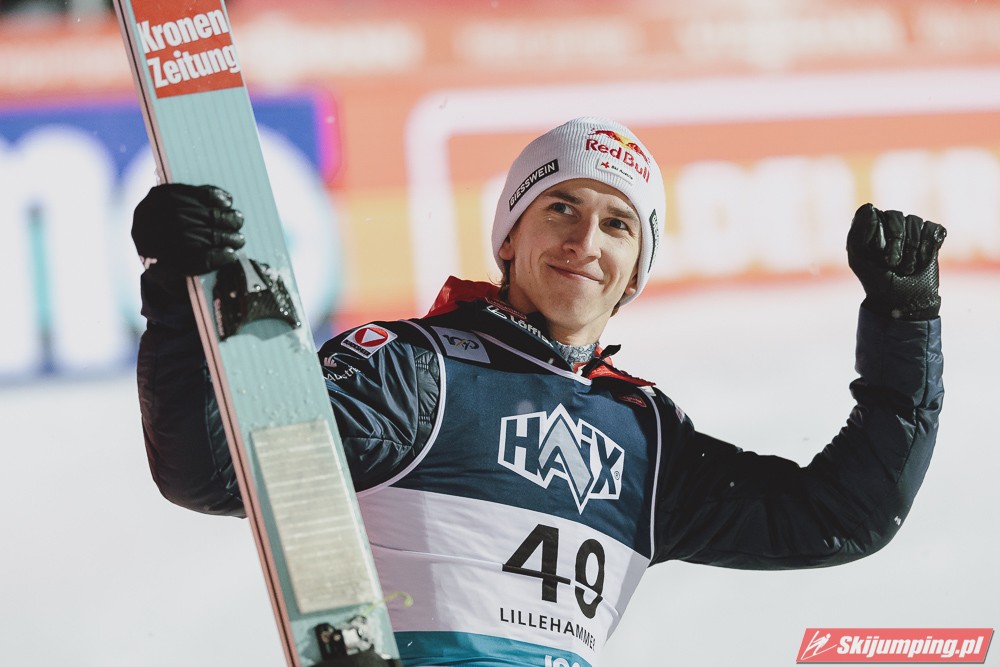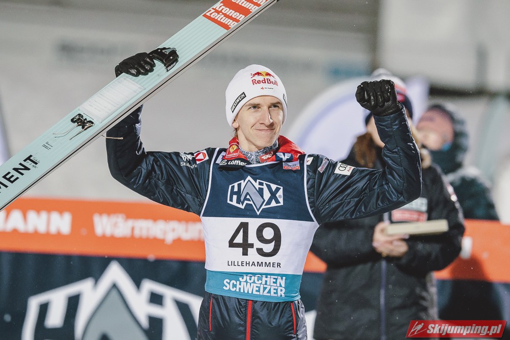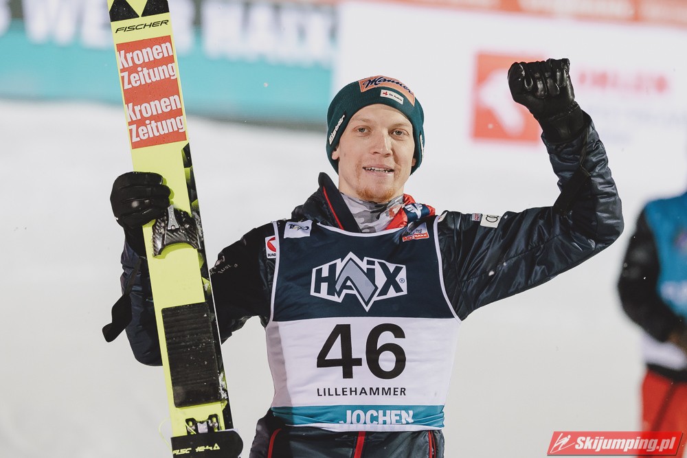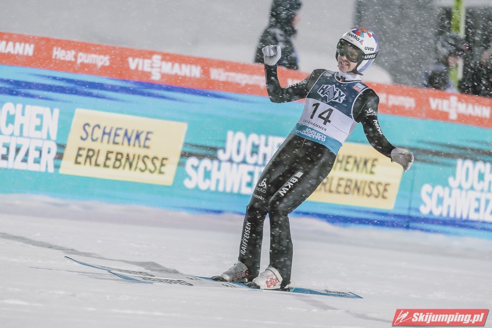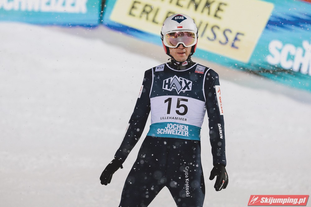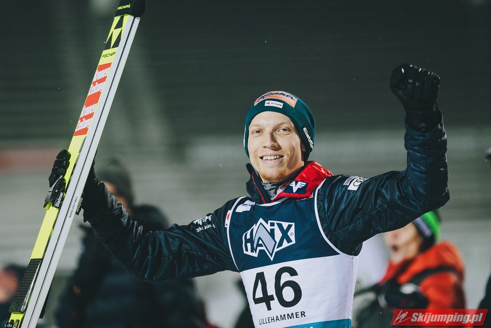 Austriacy znowu zaliczyli bardzo udany konkurs, 3 w TOP4, 5 w TOP10, był to kapitalny weekend w ich wykonaniu, znowu zanosi się na dominację w PN. Hoerl zwieńczył weekend w pełni zasłużonym zwycięstwem, on i Paschke skakali tu zdecydowanie najlepiej. Tschofenig również bardzo dobrze wchodzi w sezon, dwukrotnie zameldował się na podium, ciekawe czy będzie w stanie utrzymać taką formę przez cały sezon. Kraft dwukrotnie prowadził po 1 serii i dwukrotnie spadł na 4. miejsce, ale Stefan i tak może być zadowolony z tego weekendu, on powinien rozkręcić się z konkursu na konkurs. Myślę, że w Ruce będzie już na podium, a może nawet i wygra, bo ta skocznia jest idealna pod jego styl. Ortner w ostatniej chwili załapał się do składu przez pecha Hubera, a wyjeżdża z Lillehammer jako 5. zawodnik generalki, chyba nikt się tego nie spodziewał. Fettner zanotował dwa porządne konkursy, Hayboeck bez rewelacji, Embacher nienajgorzej. Niemiec wyjeżdża z Norwegii jako lider PŚ, ale nie jest to Wellinger, po którym bardziej można by się było tego spodziewać, tylko Paschke. Trzeba przyznać, że Horngacher ładnie go przygotował do sezonu, myślę, że w Ruce również będzie walczył o najwyższe lokaty. Wellinger rozkręca się z dnia na dzień, liczę na to, że w Ruce również będzie progres. Dla Deshwandena był to bardzo udany weekend, dziś był najlepszy spoza nieosiągalnej dla innych czwórki, kto wie czy ten sezon nie będzie dla niego jeszcze bardziej udany niż poprzedni. Frantz dwukrotnie w TOP10, z Norwegii jak najbardziej może wyjeżdżać z uśmiechem na twarzy. Zawiedli na pewno Norwegowie, najlepszy Sundal, wczoraj 7., dziś 6., a po piątku wydawało się, że on może tu walczyć o zwycięstwo. Podobnie jak Lindvik, w piątek skakał kapitalnie, a we wczorajszym i dzisiejszym konkursie nie zmieścił się nawet w TOP10, zdecydowanie spisał się na największy minus u Norwegów. Ryoyu spokojnie wchodzi w sezon, jak całkiem wyzdrowieje to powinien walczyć o czołówkę. Bardzo słabo wyglądają Słoweńcy poza Laniskiem i Zajcem, który dziś spisał się wyraźnie lepiej niż wczoraj. Na plus niezłe punkty Aigro, Fouberta i Bicknera. Jeśli chodzi o naszych to dzisiaj niestety słabiej niż wczoraj, na plus Wąsek, ale niestety z dnia na dzień prezentował się coraz słabiej. Zniszczoł nieźle, bo dwa razy zapunktował, ale stać go na więcej. Myślę, że na lotnej Ruce będzie mu się wiodło lepiej. Stoch jednak wyjeżdża z drobnicą, Kubacki niestety dziś bez punktów. Kot to w ogóle tragedia.