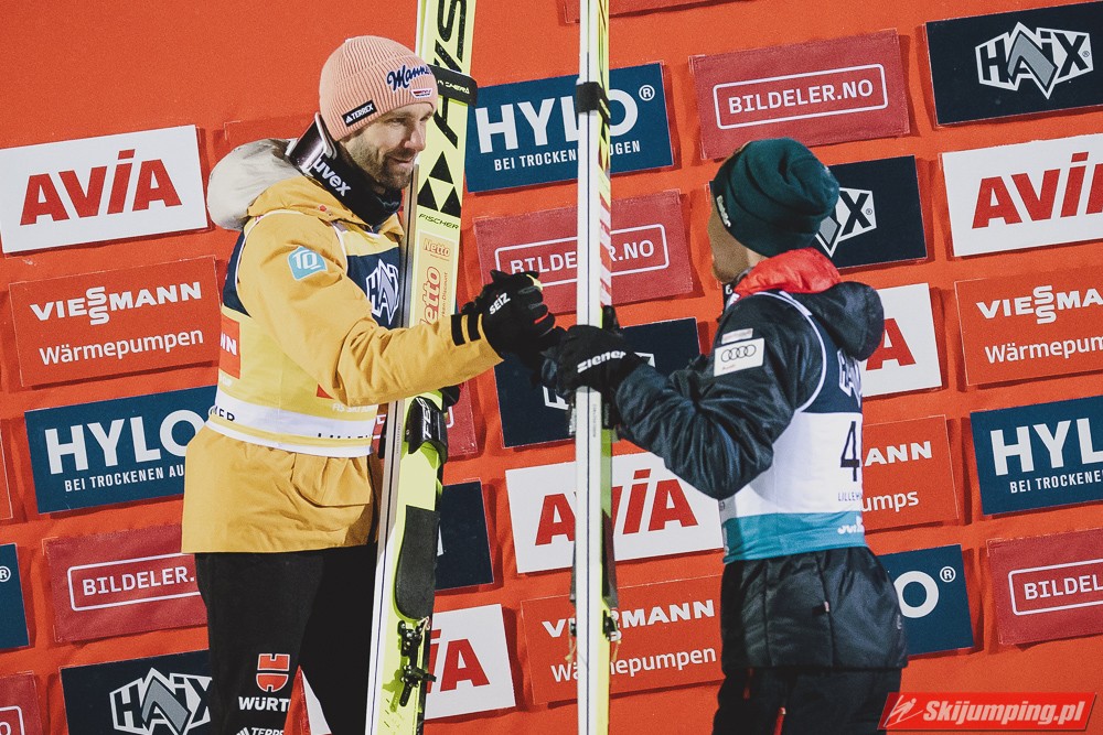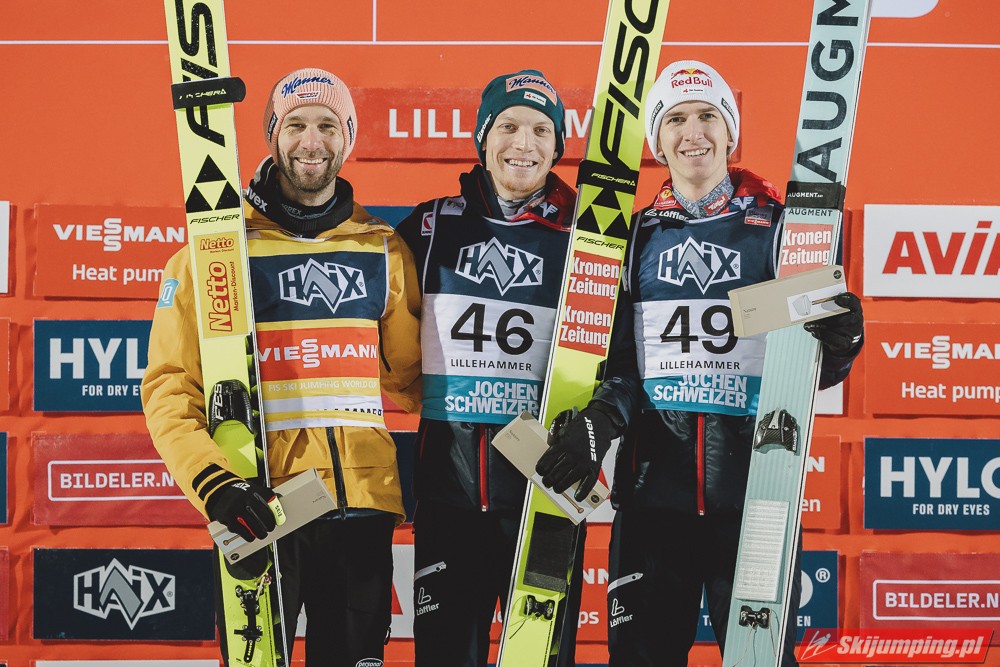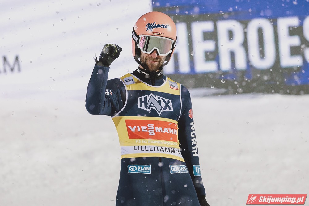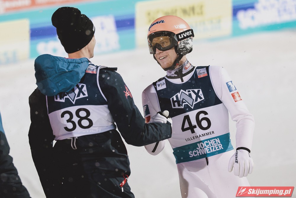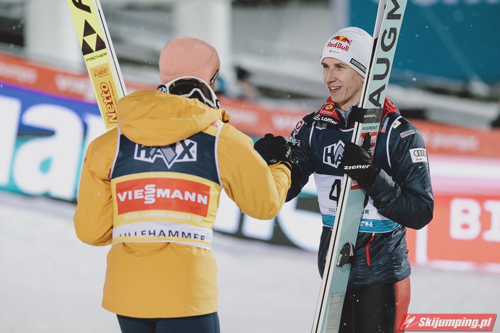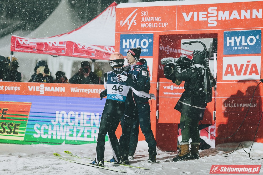 Austriacy znowu zaliczyli bardzo udany konkurs, 3 w TOP4, 5 w TOP10, był to kapitalny weekend w ich wykonaniu, znowu zanosi się na dominację w PN. Hoerl zwieńczył weekend w pełni zasłużonym zwycięstwem, on i Paschke skakali tu zdecydowanie najlepiej. Tschofenig również bardzo dobrze wchodzi w sezon, dwukrotnie zameldował się na podium, ciekawe czy będzie w stanie utrzymać taką formę przez cały sezon. Kraft dwukrotnie prowadził po 1 serii i dwukrotnie spadł na 4. miejsce, ale Stefan i tak może być zadowolony z tego weekendu, on powinien rozkręcić się z konkursu na konkurs. Myślę, że w Ruce będzie już na podium, a może nawet i wygra, bo ta skocznia jest idealna pod jego styl. Ortner w ostatniej chwili załapał się do składu przez pecha Hubera, a wyjeżdża z Lillehammer jako 5. zawodnik generalki, chyba nikt się tego nie spodziewał. Fettner zanotował dwa porządne konkursy, Hayboeck bez rewelacji, Embacher nienajgorzej. Niemiec wyjeżdża z Norwegii jako lider PŚ, ale nie jest to Wellinger, po którym bardziej można by się było tego spodziewać, tylko Paschke. Trzeba przyznać, że Horngacher ładnie go przygotował do sezonu, myślę, że w Ruce również będzie walczył o najwyższe lokaty. Wellinger rozkręca się z dnia na dzień, liczę na to, że w Ruce również będzie progres. Dla Deshwandena był to bardzo udany weekend, dziś był najlepszy spoza nieosiągalnej dla innych czwórki, kto wie czy ten sezon nie będzie dla niego jeszcze bardziej udany niż poprzedni. Frantz dwukrotnie w TOP10, z Norwegii jak najbardziej może wyjeżdżać z uśmiechem na twarzy. Zawiedli na pewno Norwegowie, najlepszy Sundal, wczoraj 7., dziś 6., a po piątku wydawało się, że on może tu walczyć o zwycięstwo. Podobnie jak Lindvik, w piątek skakał kapitalnie, a we wczorajszym i dzisiejszym konkursie nie zmieścił się nawet w TOP10, zdecydowanie spisał się na największy minus u Norwegów. Ryoyu spokojnie wchodzi w sezon, jak całkiem wyzdrowieje to powinien walczyć o czołówkę. Bardzo słabo wyglądają Słoweńcy poza Laniskiem i Zajcem, który dziś spisał się wyraźnie lepiej niż wczoraj. Na plus niezłe punkty Aigro, Fouberta i Bicknera. Jeśli chodzi o naszych to dzisiaj niestety słabiej niż wczoraj, na plus Wąsek, ale niestety z dnia na dzień prezentował się coraz słabiej. Zniszczoł nieźle, bo dwa razy zapunktował, ale stać go na więcej. Myślę, że na lotnej Ruce będzie mu się wiodło lepiej. Stoch jednak wyjeżdża z drobnicą, Kubacki niestety dziś bez punktów. Kot to w ogóle tragedia.
