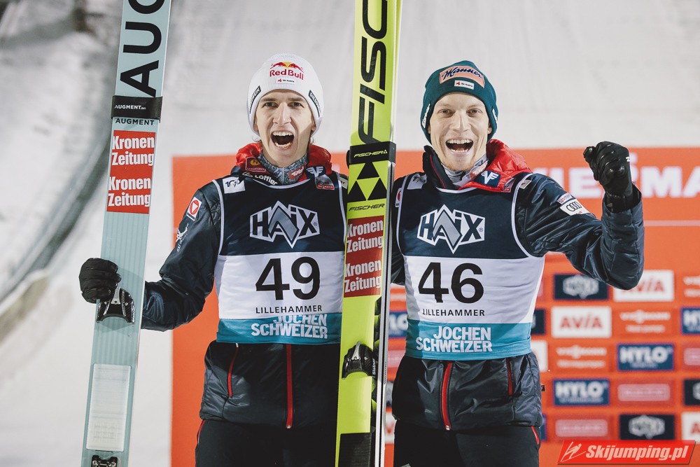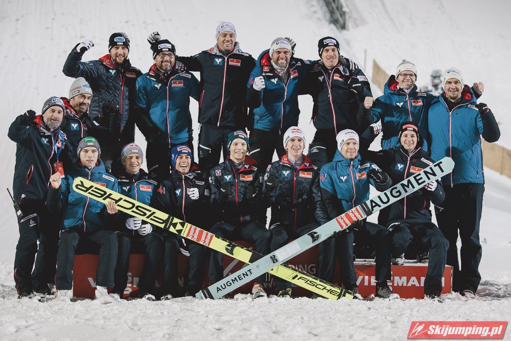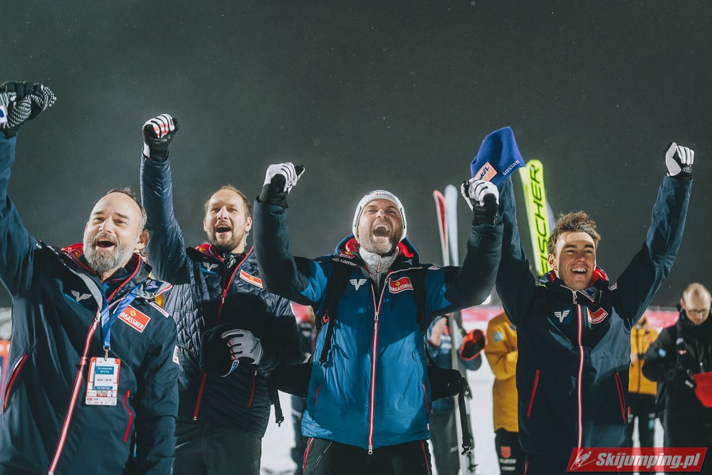 Austriacy w obydwu konkursach zakręcili się w granicach 300 punktów zdobytych jako drużyna. To mówi samo za siebie. Hoerl, Tschofenig i Kraft to absolutny światowy top i każdy z nich może na ten moment wygrywać. Najbardziej zadowolony z Norwegii wyjedzie chyba Ortner, który po wczorajszym sensacyjnym podium i dzisiaj poskakał całkiem nieźle. Oprócz tego dalej mocny jest Fettner. Jedynie Hayboeck na razie niemrawo.