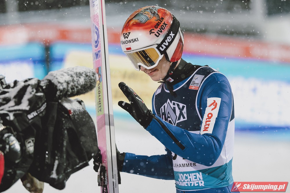Dawid Kubacki po skoku na 115. metr zakończył udział w niedzielnym konkursie na trzydziestej trzeciej pozycji. Czterdzieste trzecie miejsce zajął Maciej Kot (102,5 m).