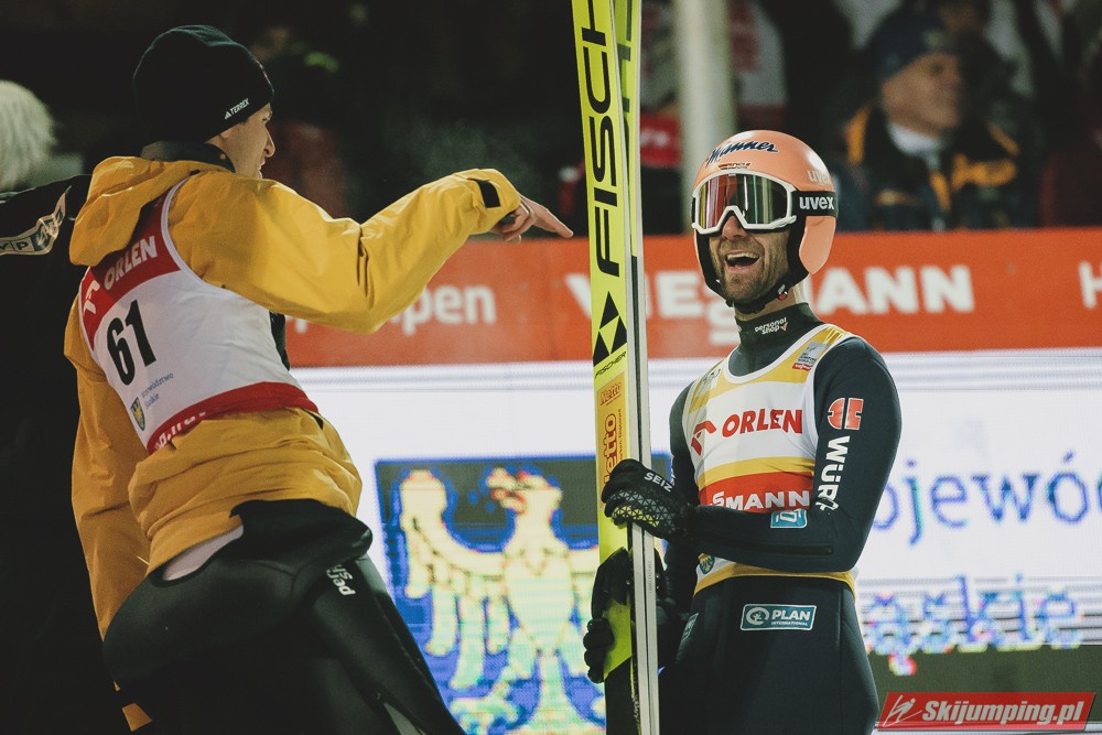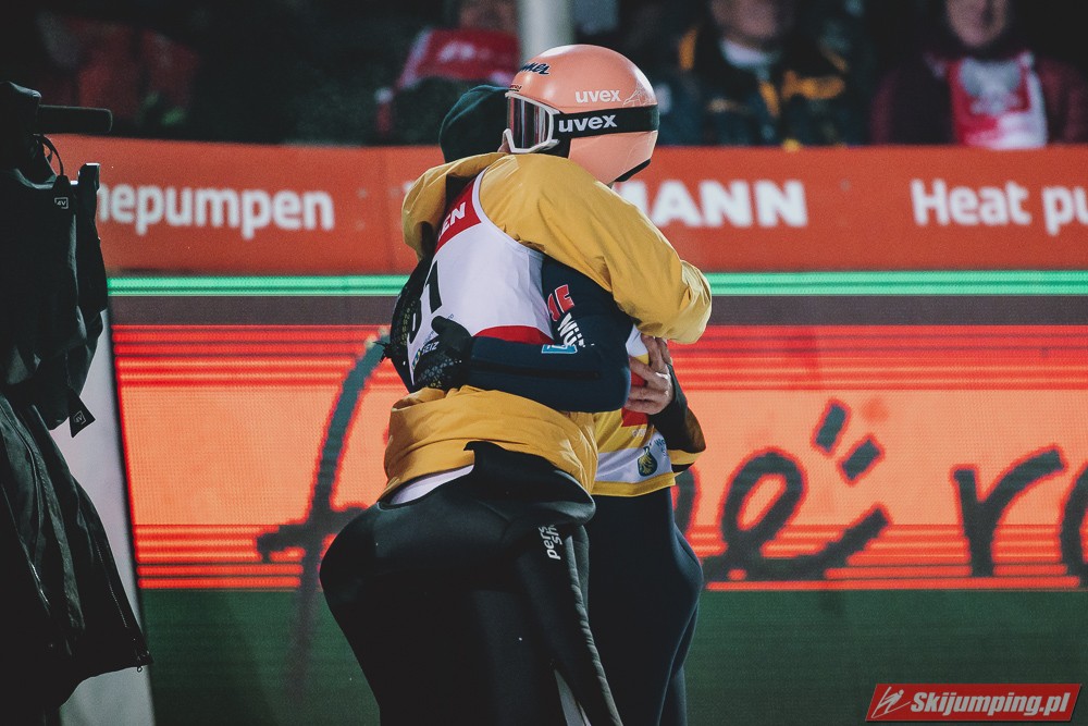 Był to bardzo fajny konkurs dla oka, najlepszy w tym sezonie, szkoda tylko tej zmiany belki pod koniec. Paschke znowu świetnie, biorąc pod uwagę jak dziś było ciasno to można to nawet nazwać nokautem. Zdecydowanie zasłużone zwycięstwo Niemca, mam tylko nadzieję, że tym razem nie zgaśnie podczas TCS. Kolejny bardzo dobry konkurs w wykonaniu Austriaków, Kraft śrubuje swój rekord w liczbie podium, co prawda jeszcze bez zwycięstwa w tym sezonie, ale chyba nikt nie ma wątpliwości, że to tylko kwestia czasu. Zajc w końcu oddał dwie bardzo próby w konkursie. Nikaido z życiówką, nieźle zastępuje słabiutkiego od kilku lat Yukiye Sato. Wellinger dużo lepiej niż wczoraj, brakuje u niego stabilizacji, ale ta może przyjdzie na TCS, oby. Deshwanden wczoraj podium, dziś znowu w TOP10, oby utrzymał taką formę jak najdłużej. Ryoyu z najlepszym rezultatem w sezonie, ale to zdecydowanie nie jest to na co stać Japończyka, mam nadzieję, że do TCS się ogarnie. Polacy z najlepszym konkursem w sezonie, sześciu w drugiej serii, pod tym względem już na pewno będzie to najlepszy wynik. Wąsek dwukrotnie skończył na 11. miejscu, cieszy forma Pawła, TOP10 to kwestia czasu, może już za tydzień w Titisee, w przeszłości osiągał tam dobre wyniki. Zniszczoł z najlepszym wynikiem w sezonie, widać, że z weekendu na weekend jest coraz lepiej, może za tydzień zaatakuje TOP10. Cieszy powrót Wolnego do niezłej dyspozycji, wczoraj pierwsze od dawna punkty, dziś już TOP20, oby tak dalej. Kubacki nieźle, Stoch i Żyła przyzwoicie.