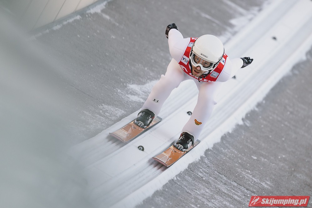 Moim zdaniem powinien odbijać się 0,1 sekundy wcześniej. Straci 0,5m bo o tyle odbije się za wcześnie, ale zyska 5 m, nie odbijając się końcami nart, 1,5m za progiem. Dodając lepsze oceny sędziów za dalekie skoki i mamy skoczka regularnie meldującego się w 10 PŚ.