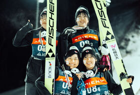 Na trzeciej pozycji sklasyfikowane zostały Japonki. Kikka Sakamoto (77 m), Riko Iwasaki (87 m), Yu Saito (82,5 m) i Yuzuki Sato (86,5 m) traciły 5,6 pkt. do prowadzących Norweżek i miały przewagąę 10,3 pkt. nad czwartymi Słowenkami.