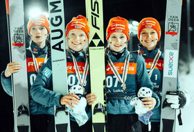 Zresztą i tak był ścisk, podium zawarło się w 4,6 punktu... Myślałem, że Słowenki zdobędą złoto, ale Jurgec wypadła kiepsko (Niemki nr 1/2/3 słabsze od Słowenek na tych pozycjach i tylko niemiecka nr 4 - Duschek - pokonała swoją słoweńską odpowiedniczkę xd), a i Erzar nie popisała się w 1. skoku. Ja się na chwilę "wyłączyłem" po konkursie chłopaków i tutaj obejrzałem właściwie tylko końcówkę II serii, ale trochę żałuję :).