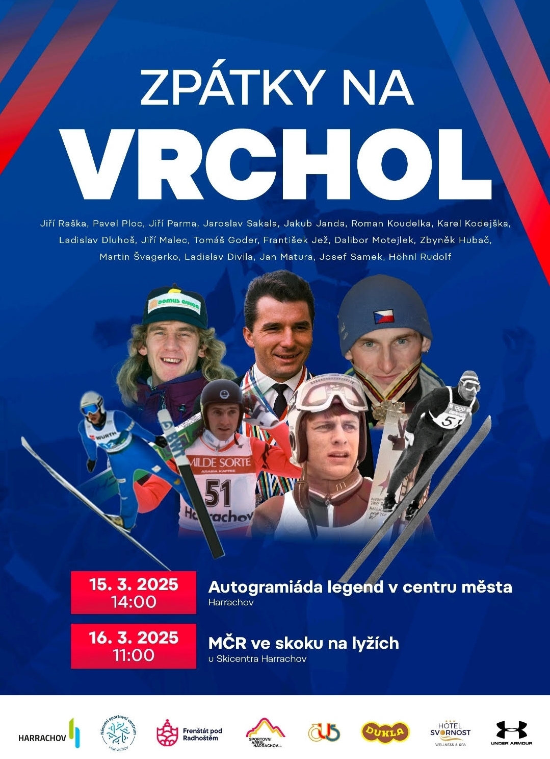 15 marca w centrum Harrachova zostanie zorganizowane spotkanie z czechosłowackimi i czeskimi legendami tej dyscypliny, podczas którego można będzie zamienić kilka słów z dawnymi bohaterami, zrobić pamiątkowe zdjęcie czy poprosić o autograf. Spodziewani są między innymi Pavel Ploc, Jiri Parma, Roman Koudelka, Jaroslav Sakala, Jakub Janda, Karel Kodejska czy Jiri Malec, czy Jan Matura. Dzień później na skoczni normalnej w Harrachovie odbędą się mistrzostwa Republiki Czeskiej, które także zgromadzą pod skocznią wybitne postacie.