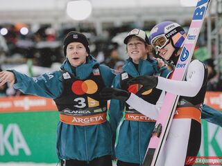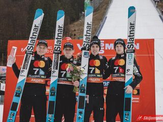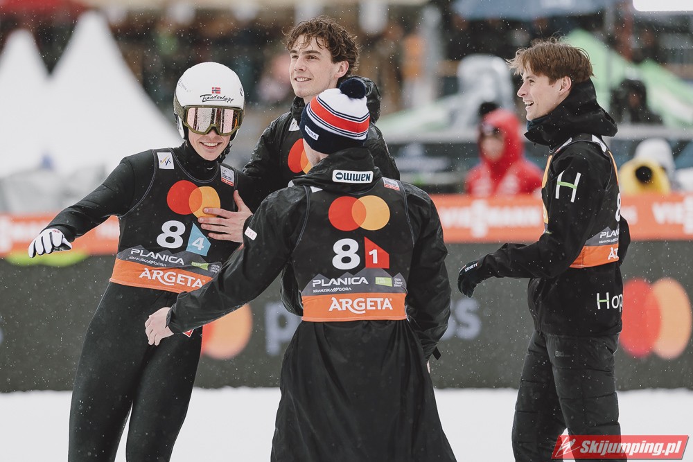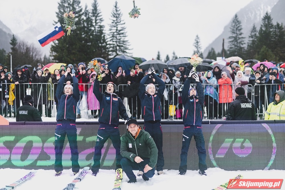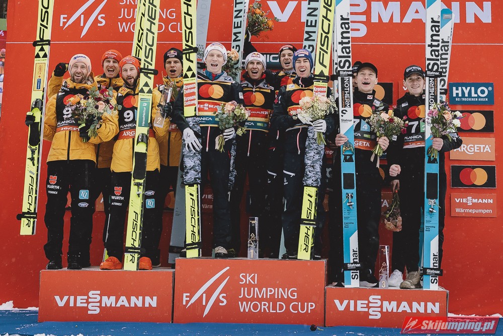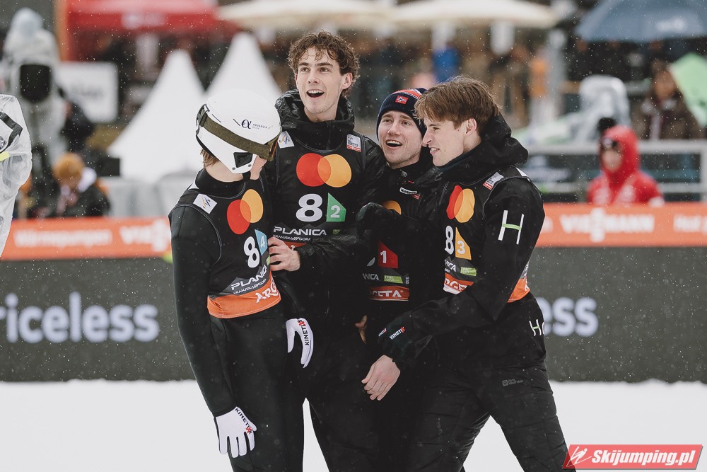 W finale Austriacy nie pozwolili sobie odebrać zwycięstwa. Daniel Tschofenig (225,5 m), Manuel Fettner (219 m), Jan Hoerl (228 m) i Stefan Kraft (230 m) tym samym przypieczętowali trzeci z rzędu triumf swojej reprezentacji w Planicy.