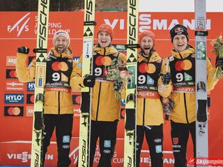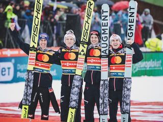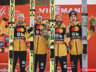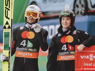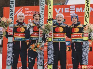 Drugie miejsce na półmetku zajmowali Niemcy. Karl Geiger (228,5 m), Andreas Wellinger (226,5 m), Pius Paschke (215,5 m) i Markus Eisenbichler (223,5 m) tracili 10,3 punktu do prowadzących Austriaków.