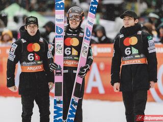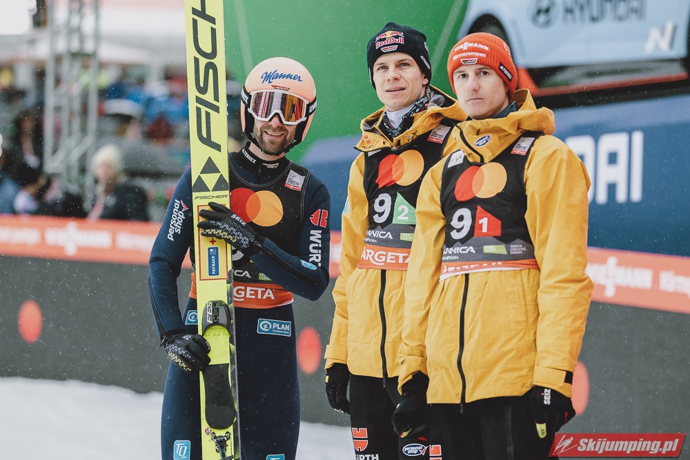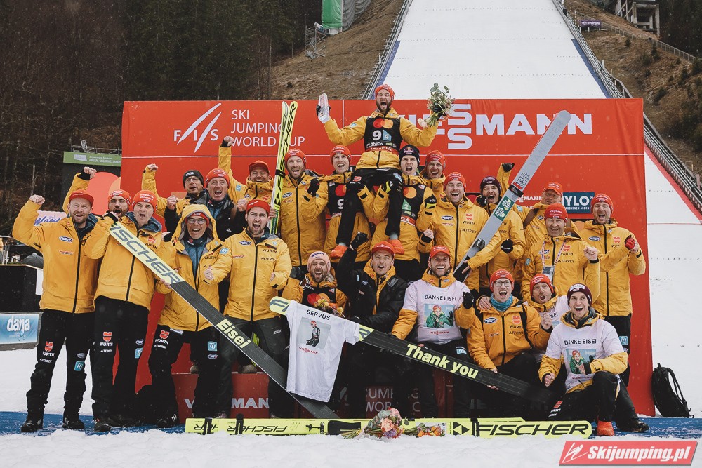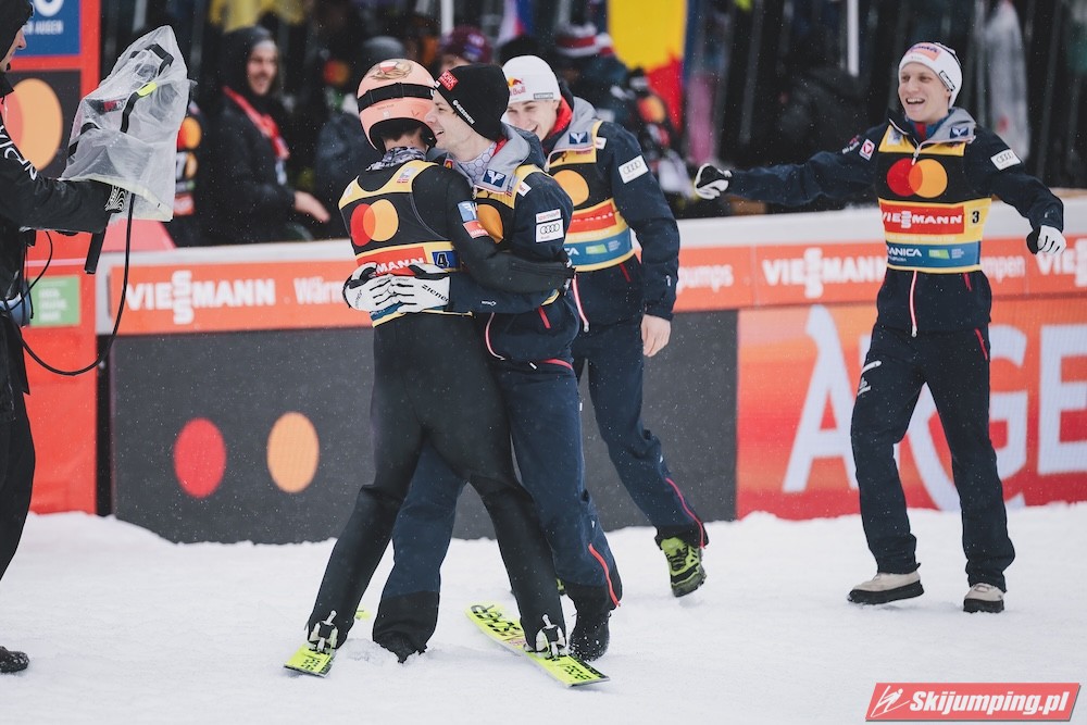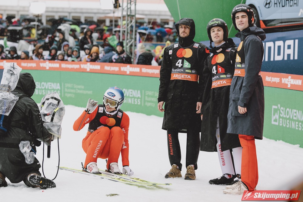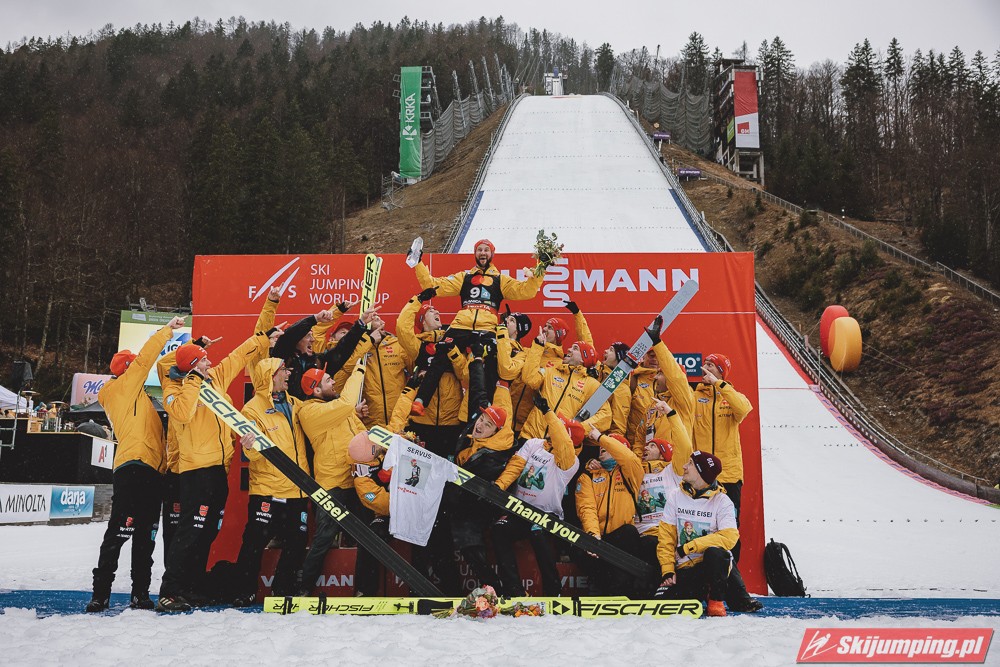Bardzo ładne pożegnanie miał Eisenbichler, pożegnał się dwoma bardzo dobrymi lotami i miejscem na podium. Wielka szkoda, że nie wystąpi w jutrzejszym konkursie, nie wątpliwie będzie go brakowało nie tylko jutro, ale i w następnych sezonach. Austriacy kolejny raz pokazują jak potrafią nie trafić na główną imprezę sezonu, wszystkie drużynówki wygrane, tylko nie na MŚ, dokładnie tak samo jak przed dwoma laty.