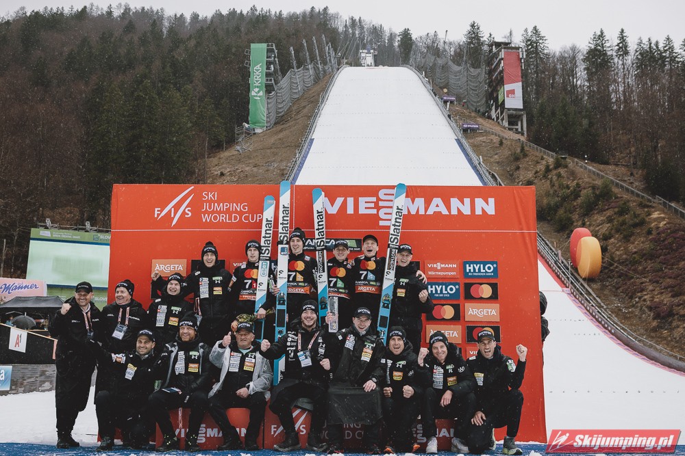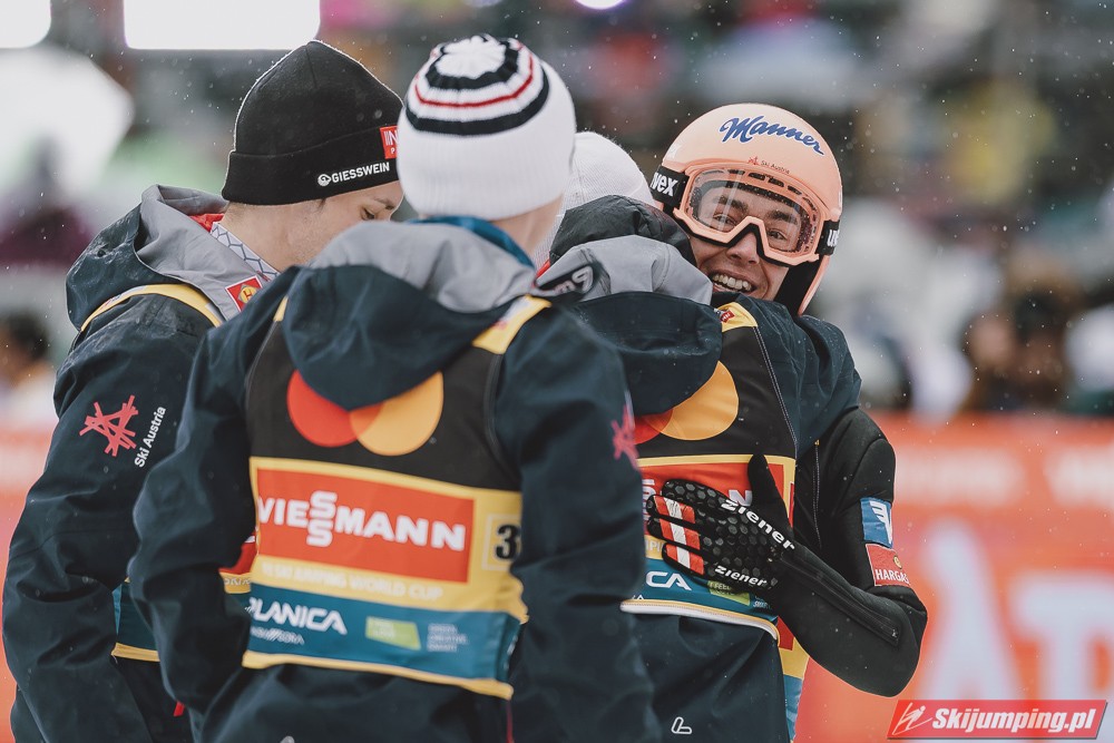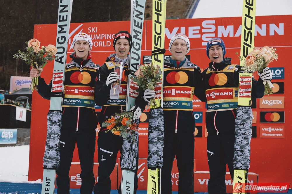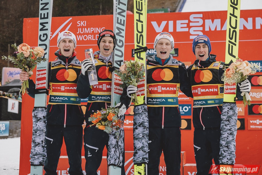 Reprezentacja Austrii wygrała sobotni konkurs drużynowy Pucharu Świata w lotach narciarskich na Letalnicy (HS240) w Planicy. Podopieczni Andreasa Widhoelzla wyprzedzili zespoły Niemiec i Słowenii. Polacy w składzie: Piotr Żyła, Aleksander Zniszczoł, Kamil Stoch i Paweł Wąsek zajęli czwartą pozycję.