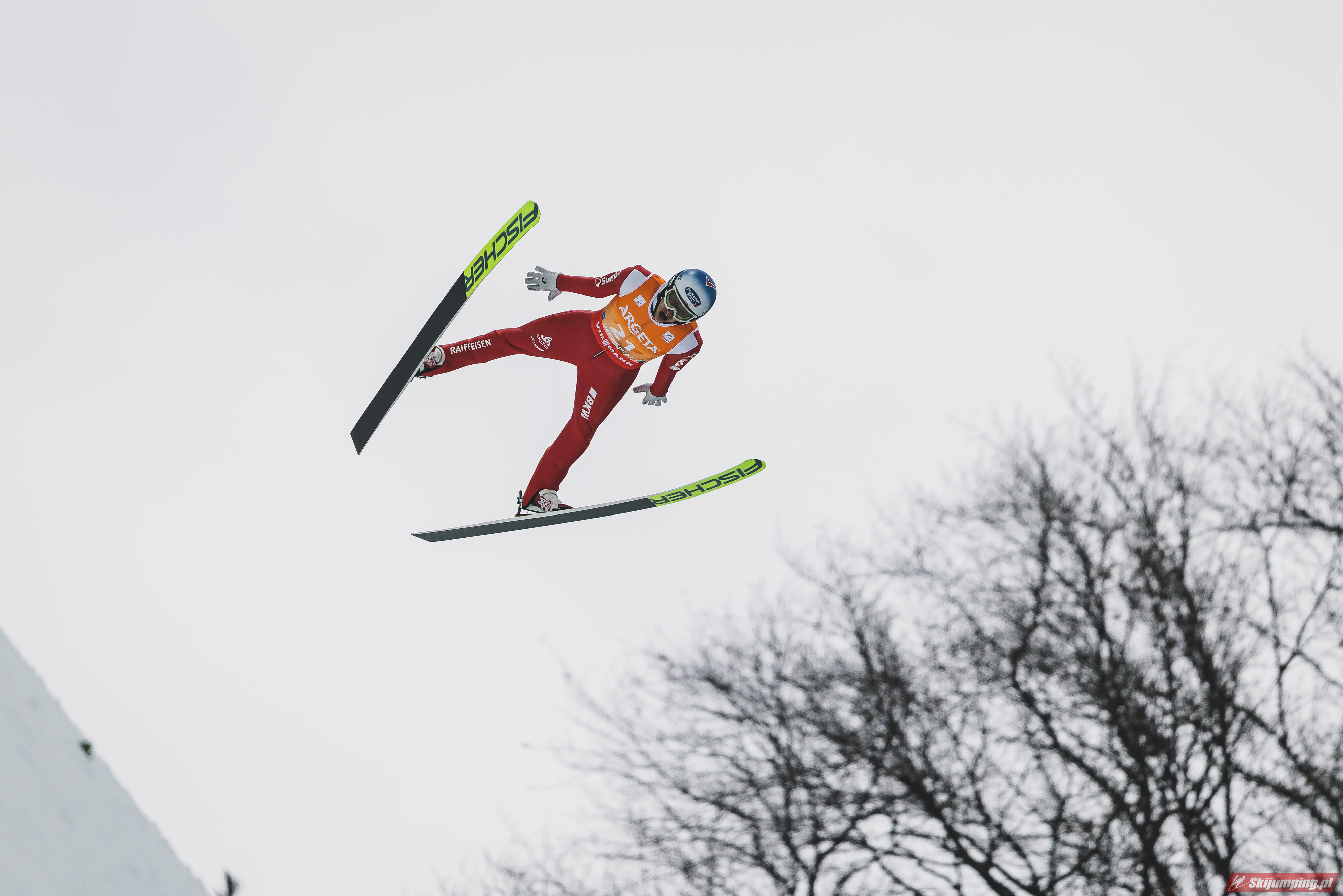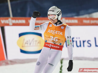 Piotr Żyła w drugim skoku poszybował na odległość 206,5 metra i awansował na szesnastą pozycję.