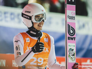 Nieoczekiwanie po pierwszej serii prowadził Marius Lindvik. Norweg z wynikiem 226,5 metra wyprzedzał o 1,4 punktu Domena Prevca, który decyzją jury i trenera ruszał z sześciu belek niżej i wylądował na 204. metrze. Trzeci był Ren Nikaido (230,5 m - nowy rekord życiowy) przed swoimi rodakami - Ryoyu Kobayashim (224 m) i Naokim Nakamurą (216,5 m).
