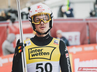 Po pierwszej serii pewnie prowadził Domen Prevc. Słoweniec z obniżonego o 3 belki rozbiegu poszybował na 238. metr i wyprzedzał o 12,8 punktu Stephana Embachera (240,5 m - nowy rekord życiowy) oraz o 30,5 pkt. Johanna Andre Forfanga (225,5 m). Czwarty był Ryoyu Kobayashi (229 m), a piąty Andreas Wellinger (223 m).