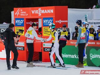 W Pucharze Świata prowadzi niezmiennie Domen Prevc (1814 pkt.), który już w piątek może zapewnić sobie pierwszą w karierze Kryształową Kulę. Drugie miejsce zajmuje Ryoyu Kobayashi (1053 pkt.), a trzecie Ren Nikaido (921 pkt.). Najlepszy z Polaków, Kacper Tomasiak (342 pkt.) jest siedemnasty.
