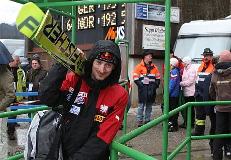 "Po tym skoku śmiałem się trochę, że udało mi się tak daleko odlecieć przy tak małej wysokości. Również rozbieg skoczni nie jest w najlepszym stanie. Padający deszcz powoduje, że powstaje na torach taka papka" - kontynuuje Polak.